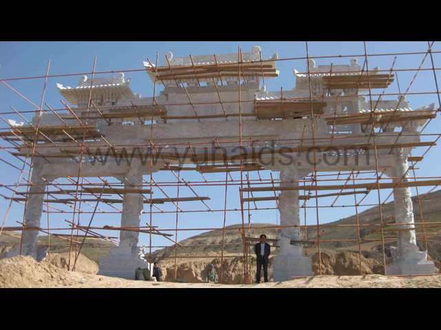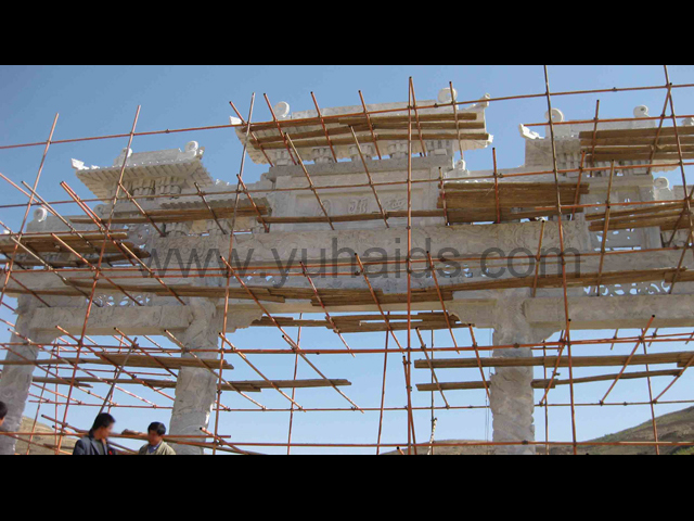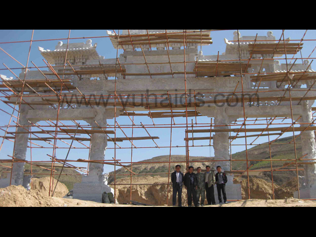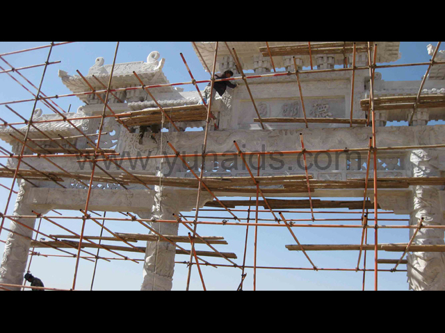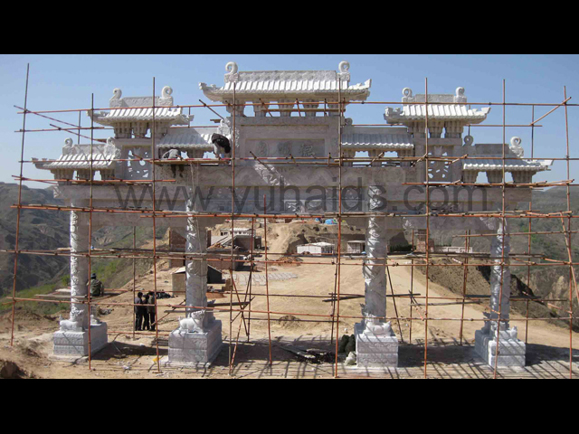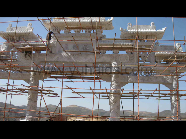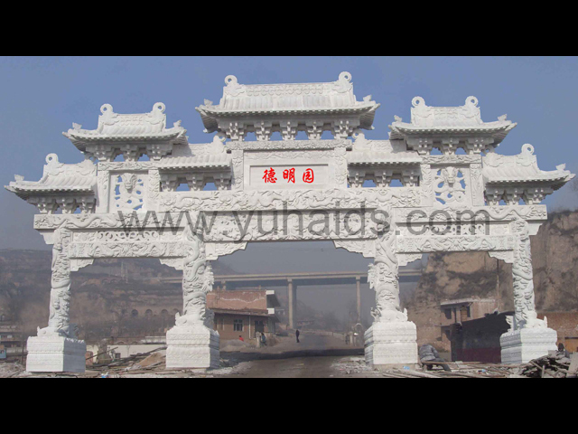 這是南京德明園大理石石雕牌坊應(yīng)用案例。整個(gè)牌坊以大理石雕刻制作而成,主要以龍紋作為裝飾圖案,包括柱體和牌坊其他部件,大都可以看到龍的形態(tài)。